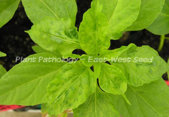 Mosaic and mottle develop on leaves at the early stage of infection. |