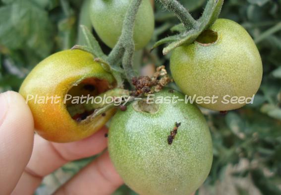Feeding causes holes in the affected areas. Larvae creates holes as they bore into the fruits, they consume the flesh leaving the fruit hollow. |