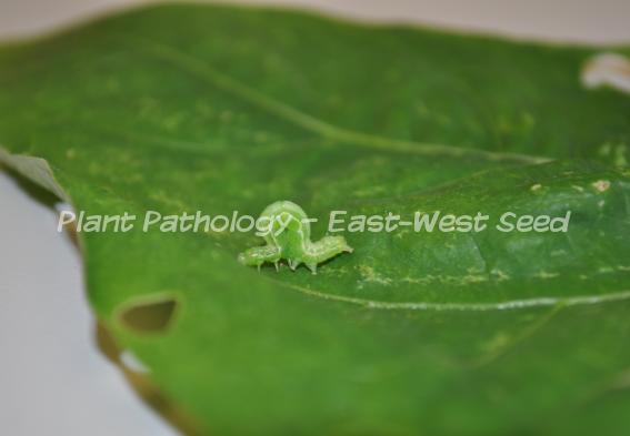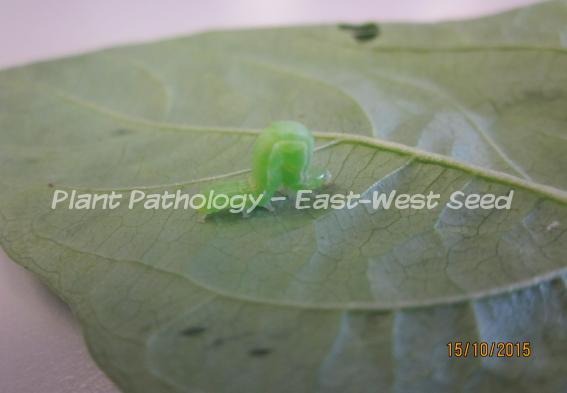 Larvae feed on the underside of the leaves creating small holes which may lead to complete defoliation of the crops. |